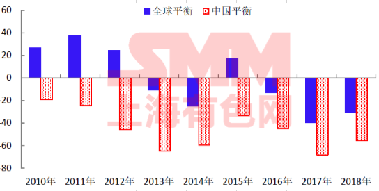 而锌社会库存呈现明显的季节性变化,每年新年前后1个月属于年内库存的高点,随着全球去库存的持续,库存高点不断下降,而2019年,冶炼厂产量存在瓶颈的情况下,累库的峰值需要增加对消费和锌锭进口量的关注。