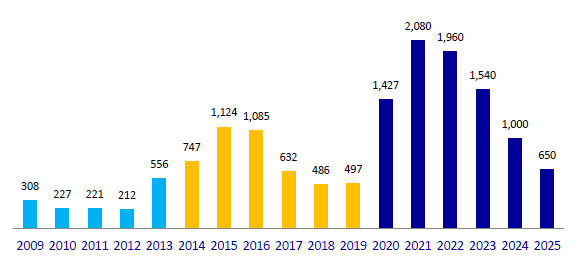 通信网络设备是移动通信系统的核心环节,主要包括无线、传输、核心网及业务承载支撑等系统设备。据申万宏源研究数据显示,通信网络设备占5G 总投资近40%,投资总额将超 5000 亿元。2020~2023 年为投资高峰期,2021 年迎来峰值。通信网络设备作为5G投资的核心环节,投资周期较长,预计5G 建设前4 年期间均会有较大规模的投资,2021 年随着宏站和小站双双放量提升预计会达到峰值。
