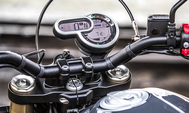 而且全新 Scrambler 自游 1100 系列采用全新开发的双横梁式 Trellis 车架,设计师通过调整前轮倾角与拖曳距,让这台加长轴距的 Scrambler 自游高速稳定性得以提升,搭配更低更宽的握把与重新规划的踏板位置,为驾乘者提供更加适合的骑行姿势。区别于杜卡迪 Scrambler 自游家族中其他成员,这次全新 Scrambler 自游 1100 系列搭载了更多的电子辅助设备。Bosch 惯性测量平台的引入带来了弯道 ABS 功能,配合 Brembo M4.32B 四活塞制动系统(前轮),带来更多的制动信心。而杜卡迪牵引力控制系统(DTC)也首次被应用到 Scrambler 自游车型中,与三种可调的骑行模式相结合,让主动安全性得到大幅提升。