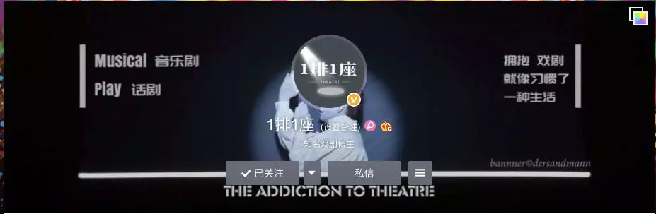 微博@1排1座是垂直戏剧平台之一,运营者小唯从2016年开始在微博收集转发戏剧相关的信息,这个号的关注量在4万左右。