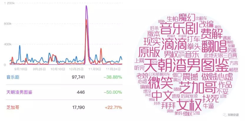 (左:微博指数 右:《天朝渣男图鉴》传播印象词)
