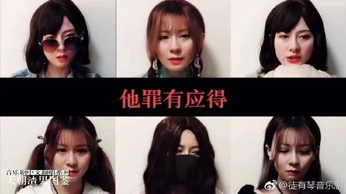 《天朝渣男图鉴》翻唱自音乐剧《芝加哥》最知名的选段《监狱探戈》(Cell Block Tango),翻唱的徒有琴团队将原曲讲述的六位女囚杀死丈夫的故事进行了本土化再创作,涉及家暴、性别歧视等众多社会话题。