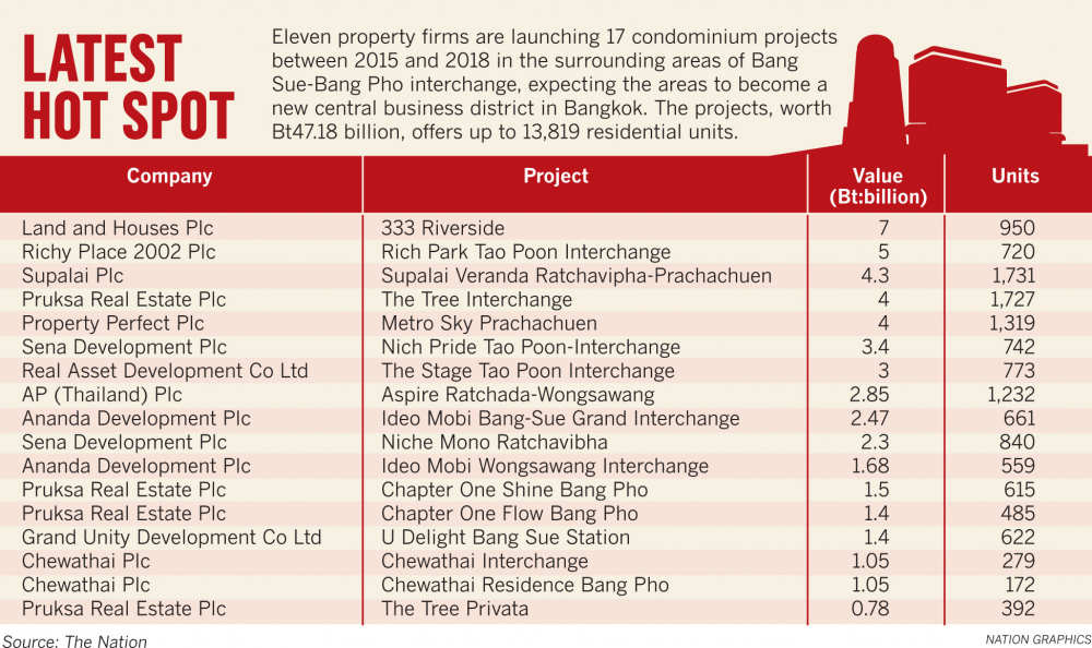 由于政府对Bang Sue区的大力扶持,开发商推新项目的节奏也快了。普夏公司的CEO Prasert Taedullayasatit表示,该公司在Bang Sue-Bang Pho交汇处也推出了新公寓项目。