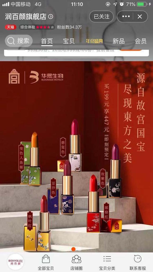 这也解释了,为什么新出的故宫口红只在文创馆微店,以及联名方华熙生物旗下的“润百颜”天猫旗舰店上线,而“故宫文创旗舰店”里却都没有。