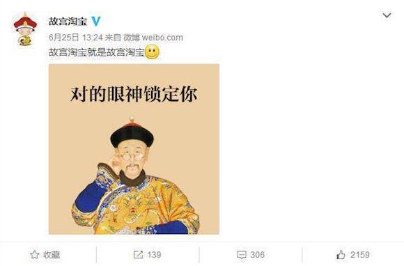 有意思的是,2016年,当“故宫博物院”官方微博发布旗舰店上线信息时,“故宫淘宝”马上跟上,说“故宫淘宝就是故宫淘宝”,还配了一个微笑的表情,后来又把这条酸溜溜的微博给删了。