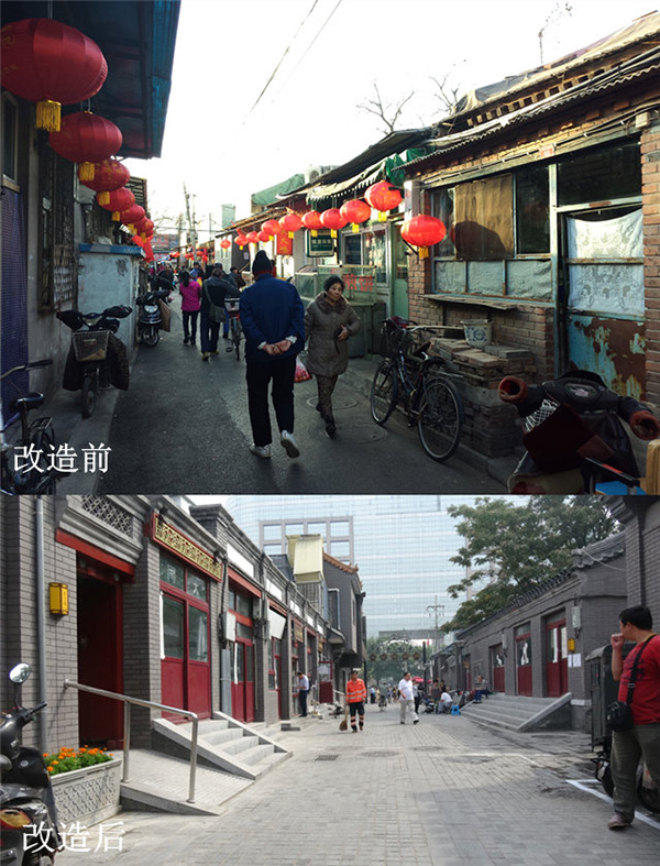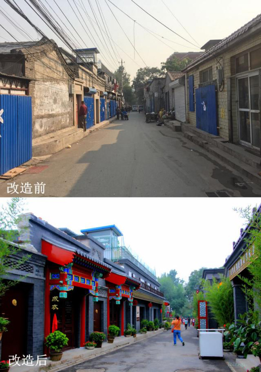 目前,模式口南小街、模式口大街中段修缮改造工程基本完成。曾经的“脏乱破堵”变成了如今的“一步一景”,传统文化重放异彩,地区面貌焕然一新。