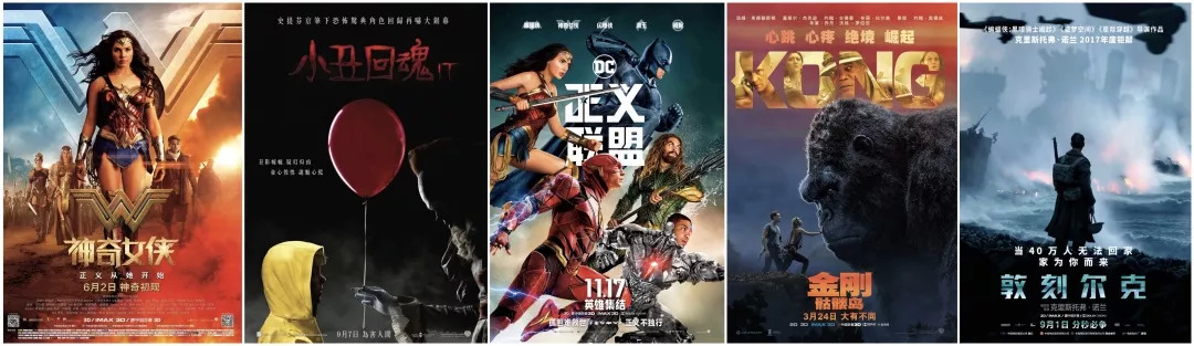 还是以华纳兄弟为例,其2017年全球票房也轻松突破50亿美元,全球票房超过5亿美元的单片包括《神奇女侠》、《小丑回魂》、《正义联盟》、《金刚:骷髅岛》和《敦刻尔克》,其中《神奇女侠》以8.21亿美元票房位列榜首,堪称是2017年度的《海王》。其中除了《小丑回魂》之外,几乎其他四部影片都在国内上映。被认为表现不佳的《正义联盟》票房也达到了6.9亿,《敦刻尔克》也达到了3.3亿,加起来两部也是10亿的体量——这一切再次告诉我们,好莱坞大片最吸引中国观众的还是视觉冲击和享受,美国本土软性文化的思想与内容在中国注定无法行销获利。