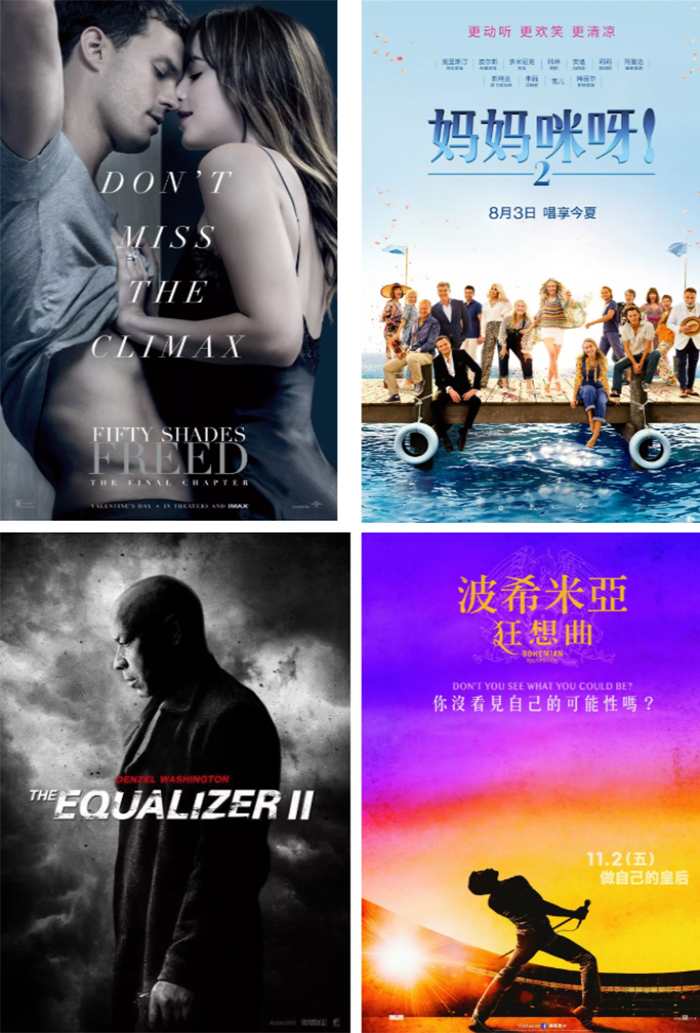 不仅是华纳兄弟,在其他六大身上,我们都可以看到这一点。比如环球影业今年票房投资回报最高的其实是情爱影片《五十度灰3》以及音乐片《妈妈咪呀2》,索尼的是丹泽尔.华盛顿的《伸冤人2》,福克斯则是前一阵大火的音乐传记片《波西米亚狂想曲》,几乎所有这些电影的成本都不会过亿,但是票房收入却不会比任何一部大制作的特效大片差。