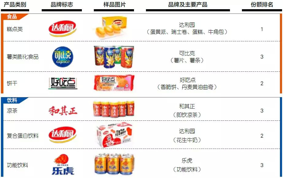 在各细分领域,达利园蛋黄派是糕点类第1,可比克是薯类第3,好吃点是饼干类第2-3,和其正是凉茶类第3,花生乳是复合蛋白饮料类第2,乐虎是功能饮料类第2-3……这些品牌产品,大多数不是第一名,但合起来的利润却能超过绝大多数竞争对手。