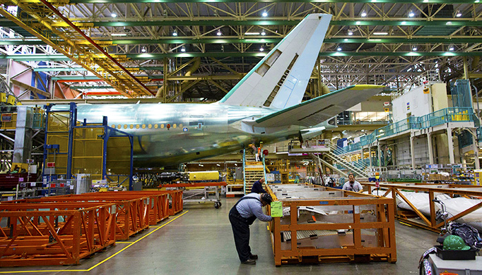 波音公司在美国有16.5万的工程和制造类工作岗位,相关业务供应链上涉及150万名员工。