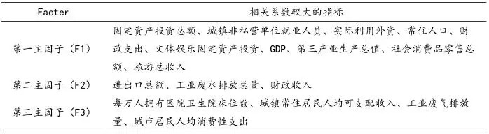 从城市发展因子来看,投资、人口和消费在城市综合发展中发挥关键性作用。第一主因子对城市综合发展影响较大,包括固定资产投资总额、城镇非私营单位就业人员、实际利用外资、常住人口、财政支出、文体娱乐固定资产投资、GDP、第三产业生产总值、社会消费品零售总额、旅游总收入等指标。