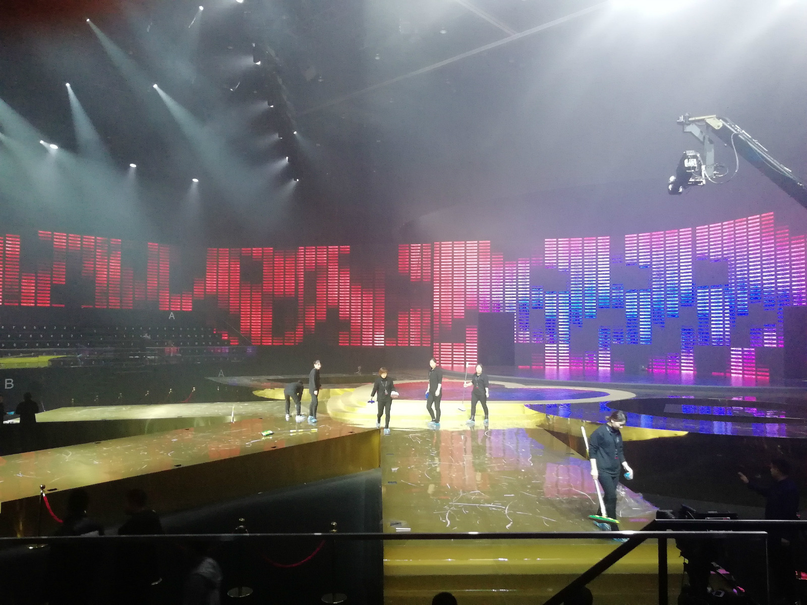 这时候的秀场应该还忙得热火朝天。我了解的是,秀前一晚排练完后,大秀当天早上所有部门还需要进行大联排。