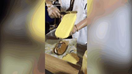 很多餐饮品类本身的制作手法就很吸引眼球,比如南京爆火的锅贴,整整齐齐的一屉,滚油淋下去,金黄酥脆。再比如上下翻滚的调皮冰淇淋,拍出来让人觉得很好玩。