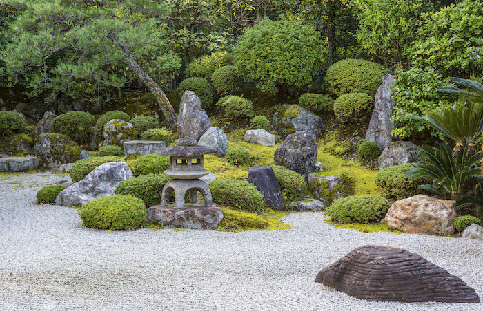 日本园林自成系统,法式严谨,并随朝代演变,按地势可分为平庭、筑山庭,按手法可分为真、行、草三体,在历史上先后出现了一系列造园派别,如平安朝(8-12世纪)皇室贵族的离宫寝殿式神泉苑;镰仓时代(13世纪)佛教方丈庭;室町时代(14-15世纪)的禅宗枯山水;桃山时代(16世纪)的茶庭;江户时代(17-19世纪)因明代遗臣朱舜水渡日讲学而兴起的文人庭。日本园林的命名、建筑物题额和配景说明皆用古典汉语,表达对中土文化的推崇之意。随着历史演变,造园艺术也从达官显贵走进寻常百姓家,即使是普通民居屋前的分寸之地,也能点缀花木,形成袖珍式“箱庭”。