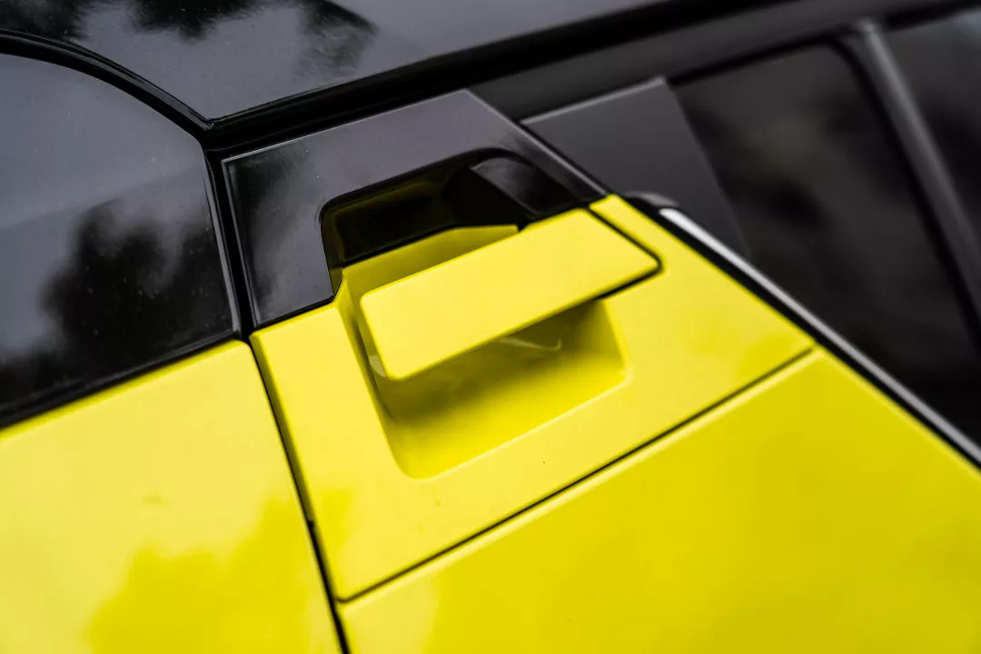 侧面是C-HR最值得玩味的地方。首先是比例,它的比例拿捏得恰到好处,无论是车头还是车尾,都不会给人一头轻一头重的感觉。同时隐藏式门把手设计非常巧妙,结合线条分割,这让C-HR看起来就像一款非常炫酷的双门Coupe。