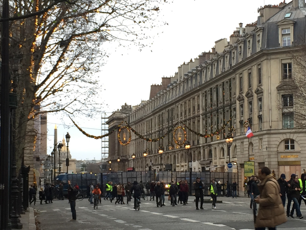 我们在12月7日的早上到达了巴黎。这座美丽的城市一直乌云密布,间或下一场小雨。卢浮宫外依旧游人如织,街边的咖啡馆始终不缺客人。我们看到了流浪汉,抱着一只狗等待路人怜悯。也看到了难民,用诱导签名的方式趁机打开你的背包。我们唯独没有看见炼狱的样子。