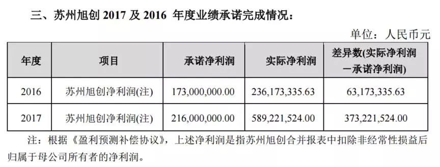 数据显示,苏州旭创2016及2017年扣非后归母净利润分别为2.36亿和5.89亿,业绩完成率分别为136.52%和272.79%。
