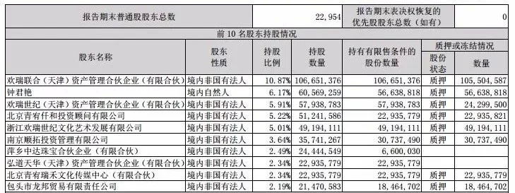 欢瑞世纪股权质押现状