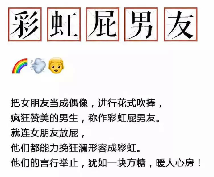 看到这,你也许把“彩虹屁男友”定义为女朋友的迷弟,女票的第一脑残粉,又或许把他们看成优秀的舔狗。