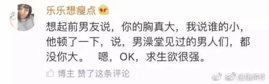 “我的彩虹屁男朋友在我疯长了20多的时候还夸我痩让我迷失了自己,后来清醒了硬拖着他陪我跑步用了三个月痩了30多下来,这就是胡乱拍马屁的代价。”