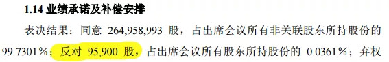 娱乐资本论查询万达电影股东大会股东大会决议公告发现,现场和网络投票的股东共146人,代表股份占上市公司总股份的65.7786%。所有的表决投票几乎是全票通过,除了每项投票中都有“顽固”的“95,900股”投出反对票。