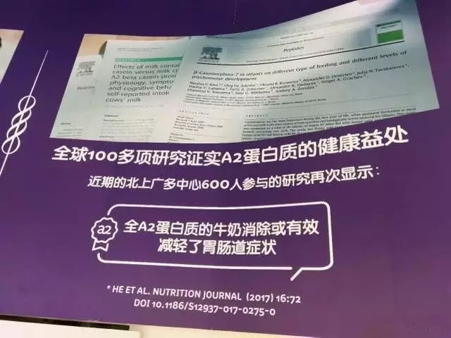 去年11月15日,A2公司在京举办的牛奶蛋白研究结果发布会上还理直气壮的声称,通过对北上广多中心600人参与的调查报告的研究结果显示,含有A2蛋白的牛奶能显著抑制牛奶不耐受的急性胃肠道症状,而含有A1型蛋白的普通牛奶,其乳糖酶活性降低,胃肠道症状增加。所以有部分人群,胃肠道产生不良症状可能是由于A1引起的,而非乳糖。值得注意的是,本项研究也是由A2牛奶有限公司赞助。