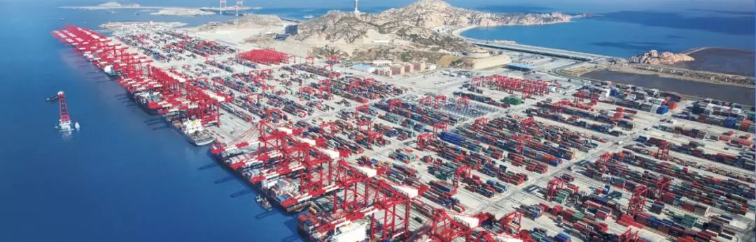 这片陆地的面积大概相当于一千个足球场那么大,使得上海的港口的吞吐量从一个小港变成了世界第一大港。