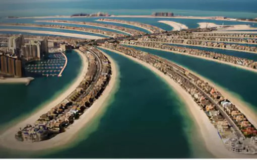 国外也有很多这种疏浚工程,比如迪拜,可能我们很多人旅游到过这里,它有一个人工填海的岛屿叫棕榈岛,就像一片棕榈树叶铺展在海中,非常美丽。
