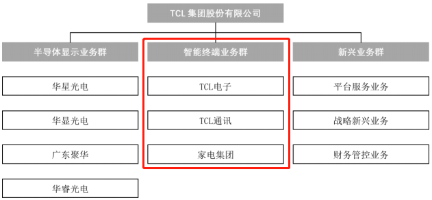 2、智能终端业务群:包括TCL电子(1070.HK)、TCL通讯、家电集团(惠州家电、合肥家电)等终端相关的业务。