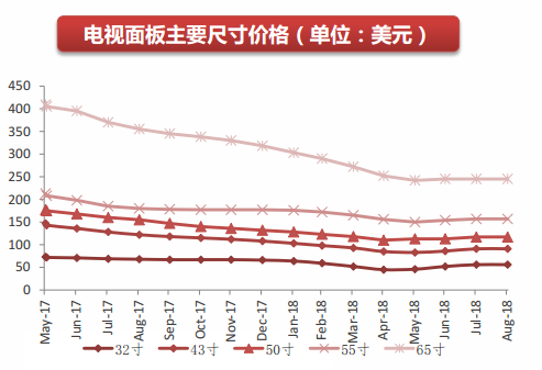 2017年下半年以来,液晶电视面板价格连续14个月下跌,截至2018年9月,中大尺寸面板价格仍在低位徘徊,手机、平板用液晶面板价格略有企稳回暖。