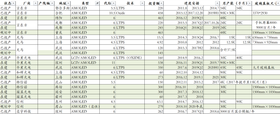 OLED方面,西南证券统计显示,目前有22条投产在建及规划中的OLED产线,其中11条已投产,8条在建中,还有3条正在规划之中。