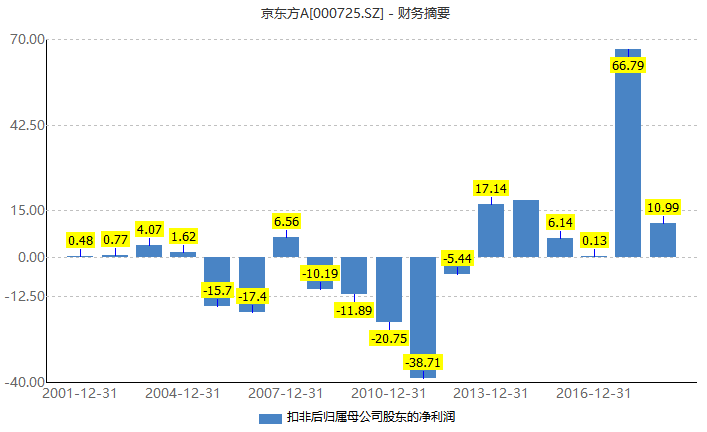京东方A就是前车之鉴,其显示器件业务占比近90%。在2015年至2018年9月这一周期中,京东方扣非后净利润最高年赚近67亿元,最低时仅0.13亿元。今年前三季度,京东方扣非利润同比下滑超过80%,更别提在低谷时期京东方业绩毫无抵抗之力连续5年巨亏。