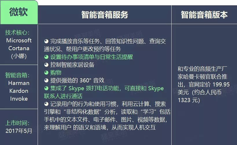 由于智能语音技术的研发周期长、投入大,行业进入壁垒较高,时至今日,全球范围内技术应用成熟的语音助手并不多。当下认知度较高的语音助手包括:乔布斯家的Siri、谷歌家的Google Now、AMAZON ALEXA、微软家的Cortana小娜,我国国内也有技术成熟厂家,在中文识别方面甚至更胜国外巨头一筹,如科大讯飞家的灵犀语音助手,以及Robin最近力推的度秘等。