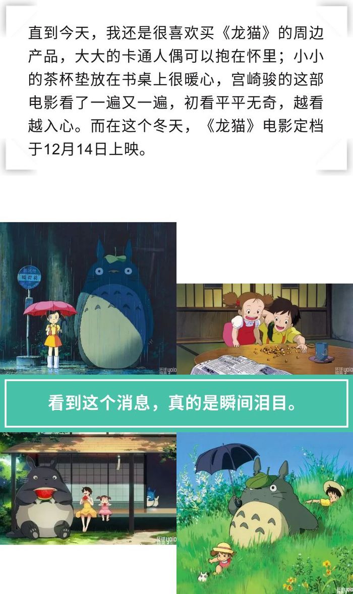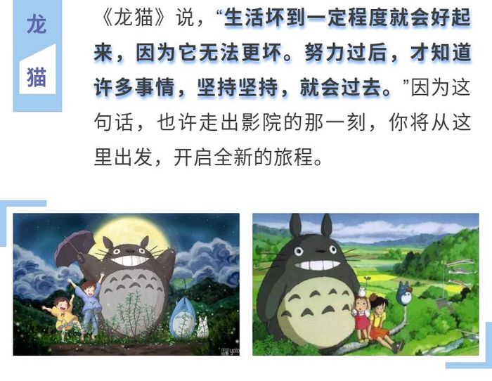 生活里有太多的无能为力与痛彻心扉,累的时候,别忘了去电影院看看《龙猫》,暂时抛却这都市的烦恼,再一次找回童年的美好。