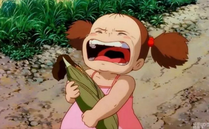 这部动画里有来自孩童的想象力。下大雨时,小梅说:“雨伞在流泪。”成年人的我看到这里,不禁要怀念儿时的自己。只有几岁的自己,肯定也讲过类似这样天真又童趣的话吧?真的是很有想象力。遗憾的是现在我再也写不出这样美好的句子。为什么呢,繁重而重复的生活将每个人都变成了一台程序化的机器。为了生存下去,我们不得不学会规矩,变得懂事,再也没了棱角和锐气。