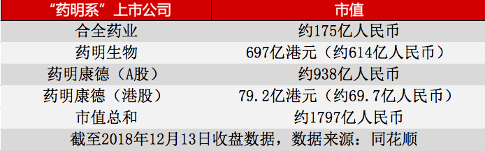 2015年4月,药明康德分拆了其旗下主要负责小分子创新药研发生产服务业务的子公司合全药业,挂牌新三板。业绩快报显示,合全药业2017年和2018年第三季度的收入分别约为22亿元和7.2亿元,均同比增长了约24%,净利润分别约为4.95亿元和1.63亿元。截至2018年12月13日收盘,其市值约为175亿元。