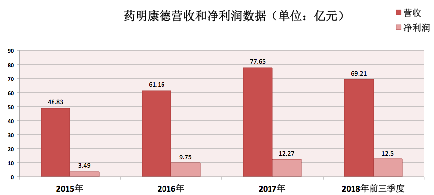 从财报可以发现,近几年,药明康德的营收、净利润等都保持着稳定快速增长。招股书显示,2015年到2017年,药明康德的营收分别为48.83亿元、61.16亿元、77.65亿元,净利润分别为3.49亿元、9.75亿元、12.27亿元。公司这三年营收和净利润的复合增长率分别高达26%和88%。2018年前三季度,其营收为69.21亿元,同比增长近22%;净利润为12.5亿元,同比增长近50%。