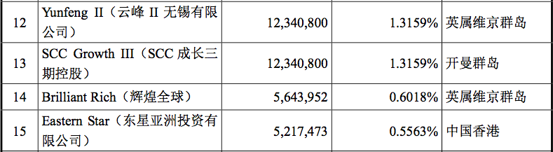 此外,公司还吸引了众多财务机构的参与,包括马云间接持股上海云锋衡远投资、君联资本(通过上海杰寰持股)、红杉资本、Eastern Star(东星亚洲投资)等。同时,持有药明康德8.64%股份的药明康德维京WXAT BVI背后的一众股东也是星光熠熠,包括高瓴资本、红杉资本、Yunfeng II(云峰 II 无锡有限公司)、SPDBI WX Limited(浦银投资)等。