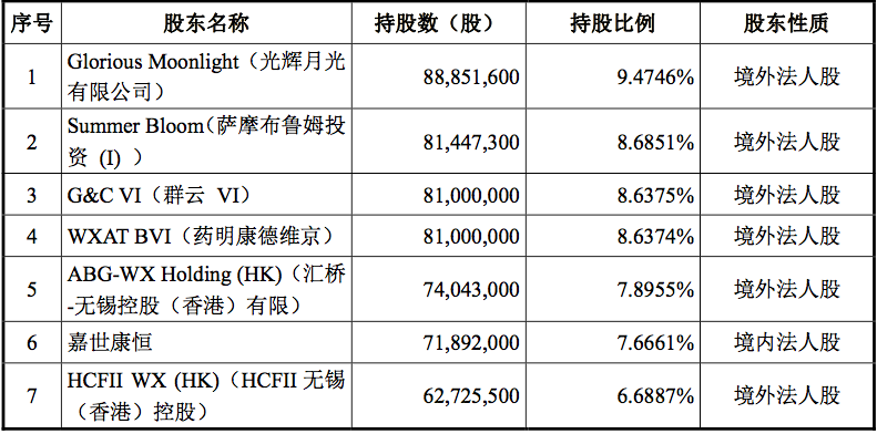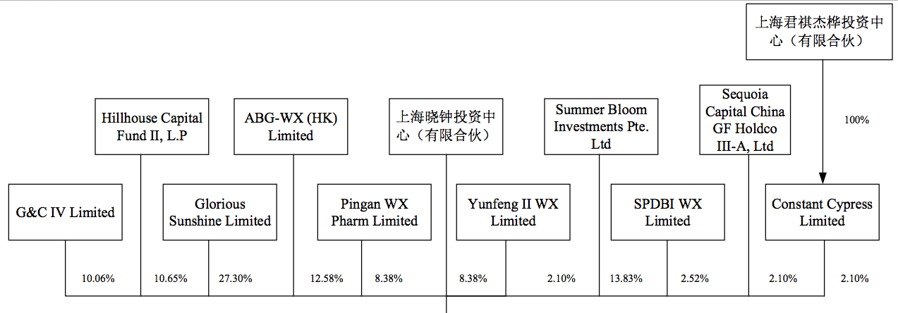 WXAT BVI(药明康德维京)的股权结构图,来自2018年5月招股书