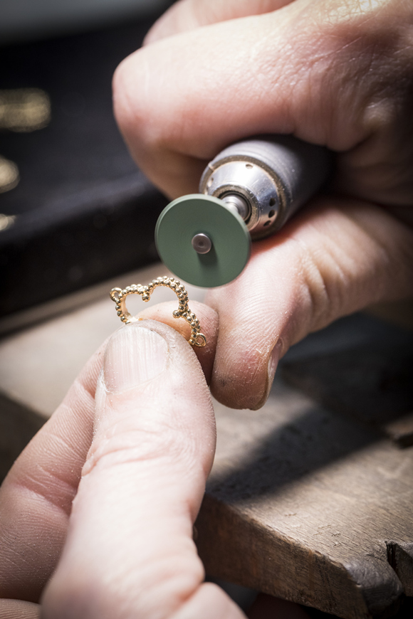 宝石雕刻师、珠宝工匠、宝石镶嵌师及抛光工匠要经过不少于15道工序来制作,无论是选材、精铸,还是品质监控,都十分严苛。