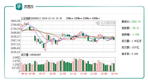 12月14日,今日沪深创同步小幅低开,随后两市震荡低走。早盘以雄安环保为首的环保板块集体冲高,带动指数略微反弹,但持续性不佳。午后大基建、次新股虽有异动拉升,带动各大指数小幅反弹,但依旧不改市场下行格局。总体上看,A股三大股指今日全天现单边下挫走势,创业板指大跌近3%,沪指失守2600点。行业板块几乎全线受挫,个股一片惨绿,两市仅200余只个股飘红,市场热点匮乏,资金观望情绪浓厚,市场情绪再次陷入冰点。