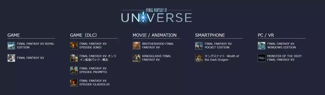《最终幻想15》游戏发展策略所涵盖的作品一览