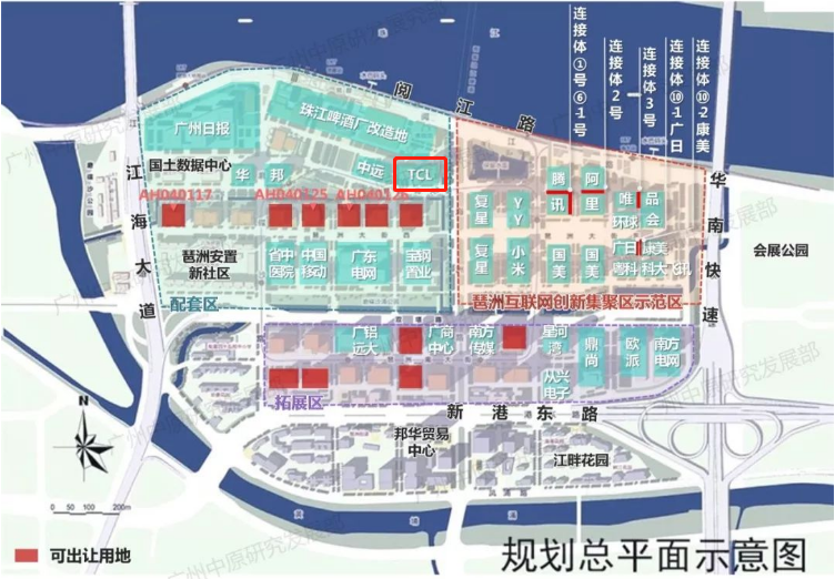 据了解,琶洲西区是广州市中心三大核心商务区之一,定位为广州“硅谷”,这一区域未来发展势头迅猛。琶洲西区已吸引大量互联网巨头批量进驻,从规划图来看,建设项目包括阿里巴巴华南运营中心、腾讯广州总部大楼、唯品会总部大楼、广东小米互联产业园、欢聚大厦等。TCL大厦便坐落其中。