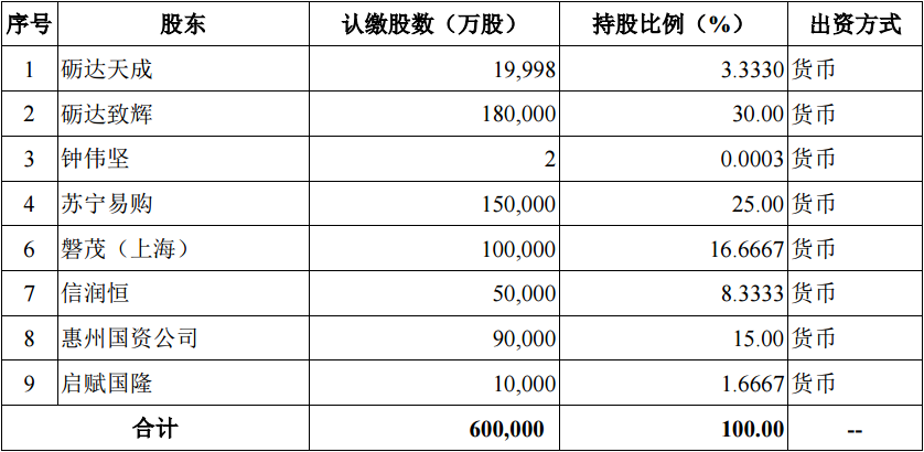 首次增资9亿元,增资后TCL控股三位股东分别是砺达天成、砺达致辉、钟伟坚(TCL集团总裁办主任)。第二次新增5位投资人共认购40亿元,分别是苏宁易购、磐茂(上海)投资中心、北京信润恒股权投资合伙企业、惠州市国有资产管理有限公司、深圳市启赋国隆中小微企业股权投资基金合伙企业。