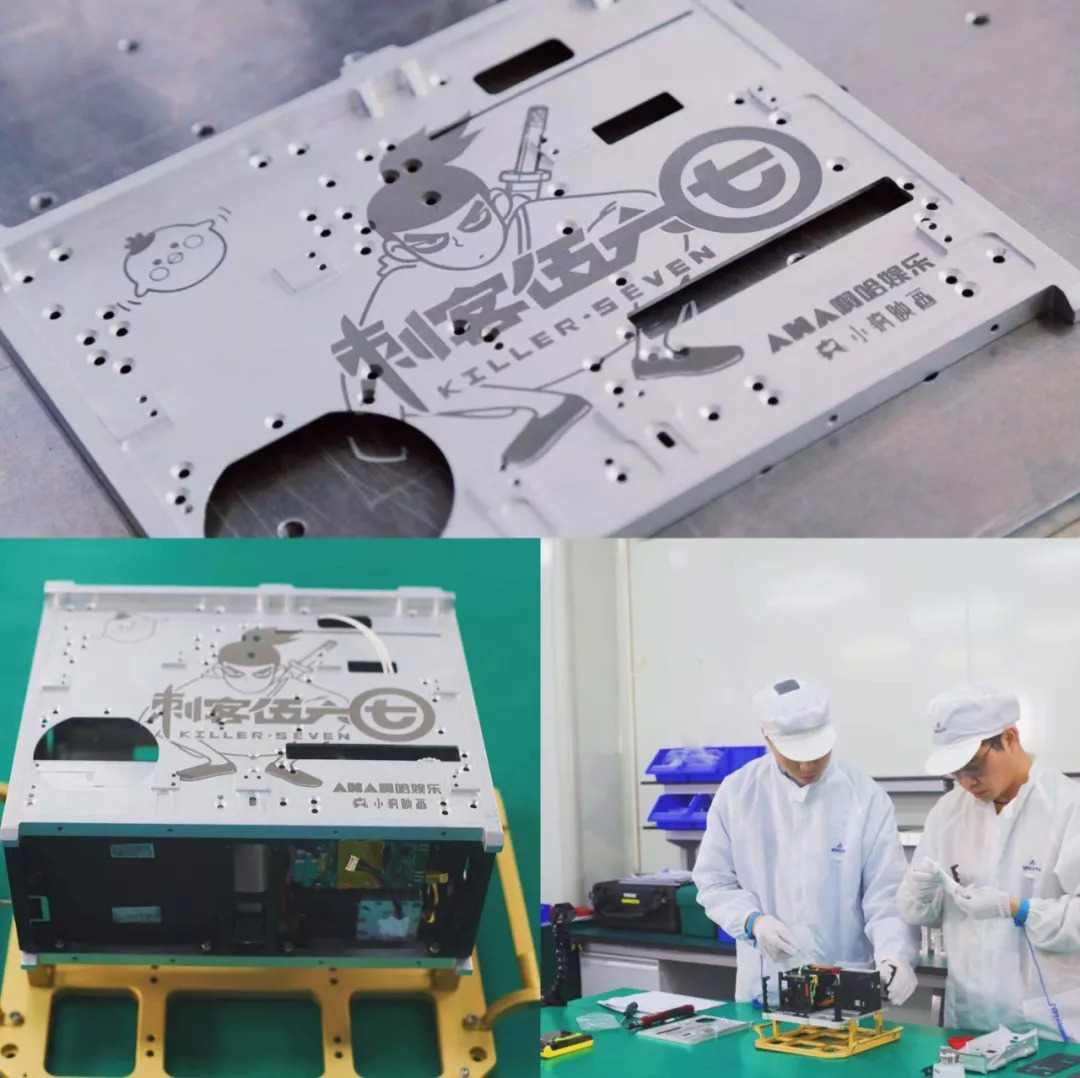 不激进、不冒进,懂得借平台的势起步,这也使得啊哈娱乐的动漫一上线就获得了出圈的机会——2017、2018两年分别上线动画《枪娘!fire》、《刺客伍六七》,前者总播量超过三亿,后者被网民称为2018年经典国漫。而且动漫形象被涂装在商业卫星上,发射上太空,成为了全球第一支飞入太空的动漫形象。