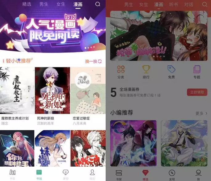 阿里文学书旗小说漫画板块、阅文集团起点小说漫画板块