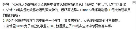 外媒猜测是帕特里克“耍大牌”惹恼了编剧大妈珊达·瑞姆斯(Shonda Rhimes),原文是这样的:“With sources telling us his ‘diva’behavior on the set of the ABC show has infuriated creator Shonda Rhimes.”其中的“diva”behavior就是在指责帕特里克的耍大牌行为。王牌电视制作人要角色领便当,那还能不领吗?
