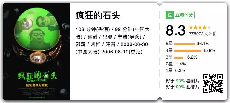 [疯狂的石头]豆瓣评分8.3,那会儿简介的演员表中,甚至还没有出现黄渤的名字