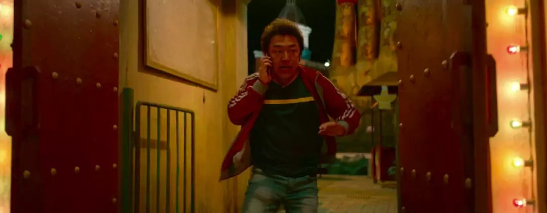 镜头一转,黄渤慌张打电话报警。夜景下斑驳复杂的电线交错,似乎彰显着环境的不寻常。