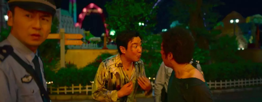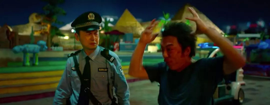 另外,他俩对话时,观众们不要错过屏幕左后方黄渤与另一位警察进行的“灵魂对谈”。只见黄渤连手带脚一通比划,警察则默默进行拍摄。